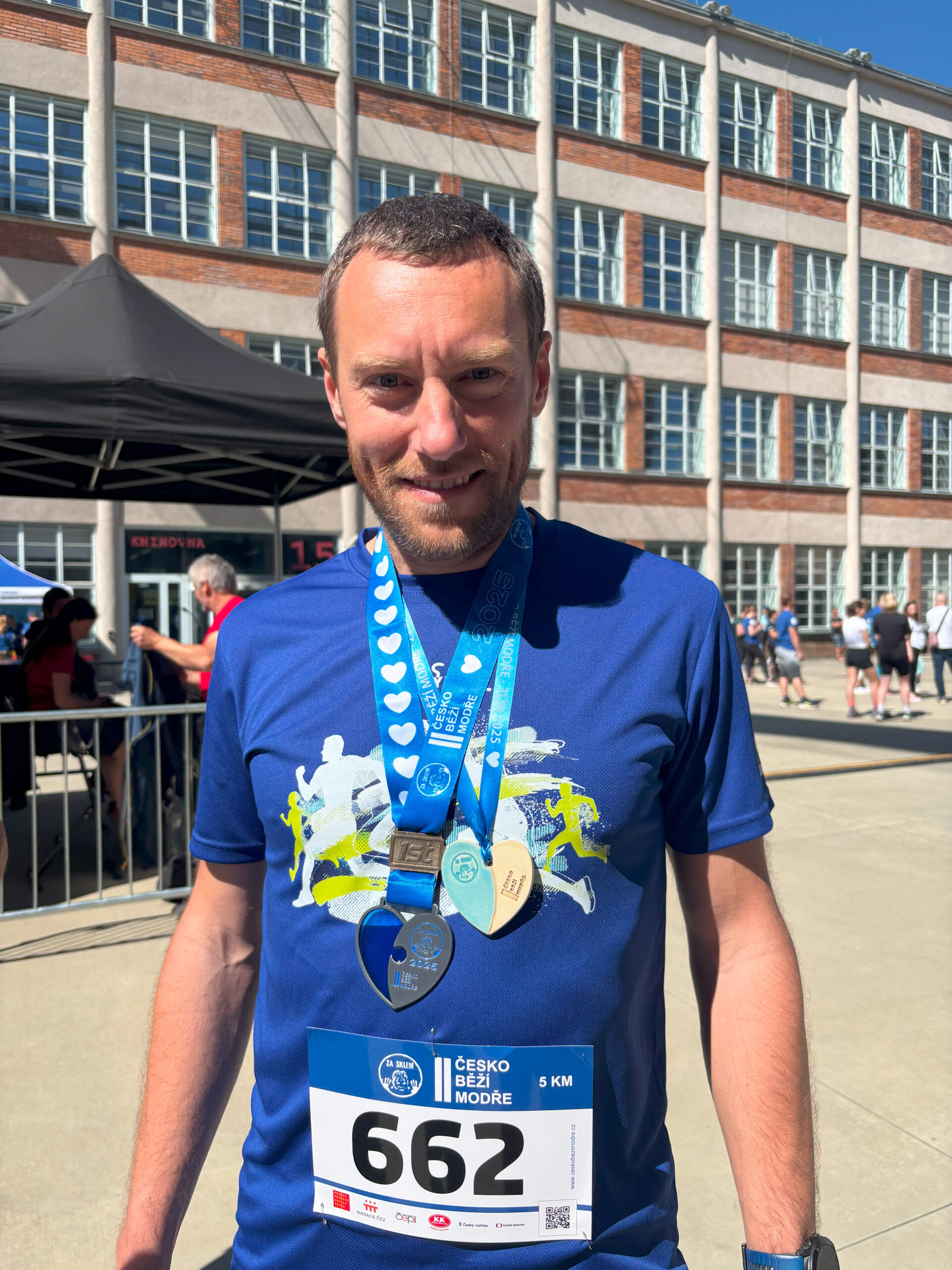 Česko běží modře nebyl ani tak závod jako primárně charitativní podpora, kterou jsme v práci zvolili jako společnou teambuildingovou akci DobrýTextil.cz. Zapojilo se nás celkem 9 odvážlivců a jsem velmi potěšený, že jsme přípravu nepodcenili a před závodem dobře trénovali. Všichni jsme zvolili 5 km trasu, oprášili běžecké boty a společně podpořili dobrou věc.