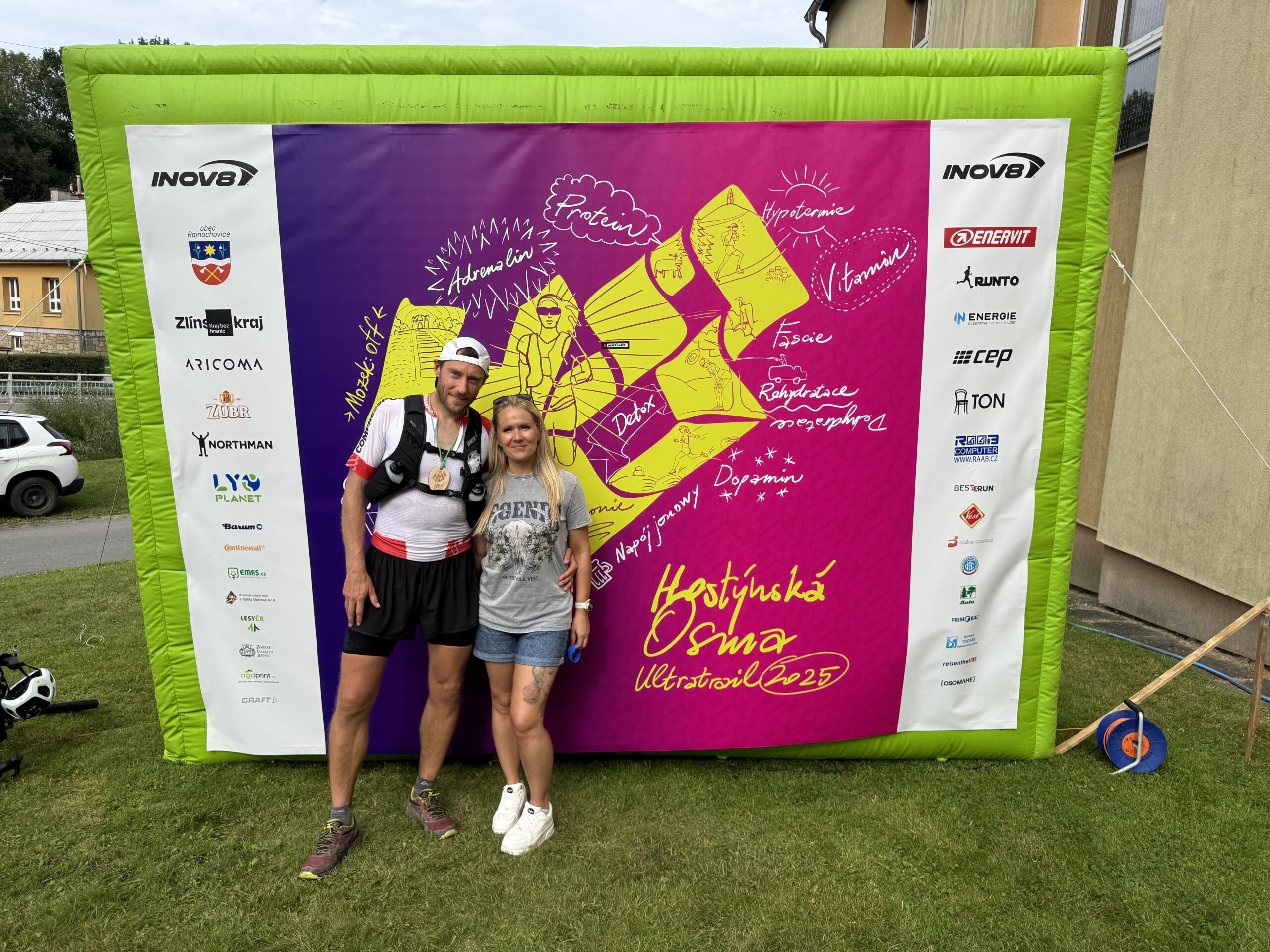 Při seběhu z Kelčského Javorníku do cíle zbývalo 6 km, prakticky už jen z kopce. Za sebou jsem nikoho neviděl a už jsem ani netlačil na pilu. Chvíli před cílem mě předběhla jedna dvojice, ale nechalo mě to úplně klidným. V cílové rovince jsem ještě zrychlil, abych stlačil čas pod 8:20, což se podle mých hodinek podařilo, podle oficiální časomíry nikoliv. Můj výsledný oficiální čas byl 8:20:17 a doběhl jsem celkově na 16. pozici a pátý v kategorii. Doby mých o hodinu lepších časů jsou pryč, ale na druhou stranu jsem byl v cíli v docela dobré formě a závod jsem si velmi užil. Takže příště opět na startu!