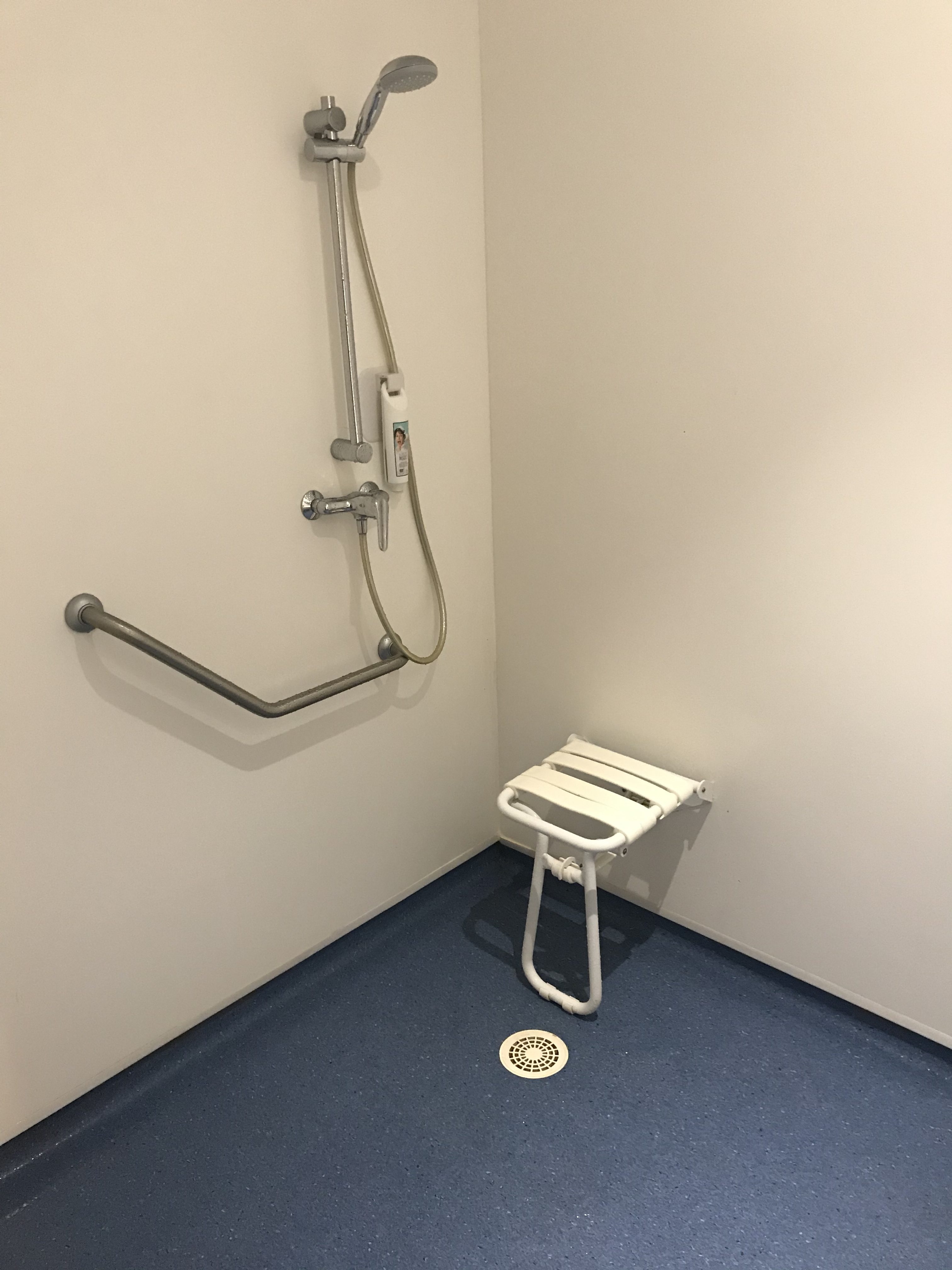 Bezbariérová sprcha v mém pokoji.
