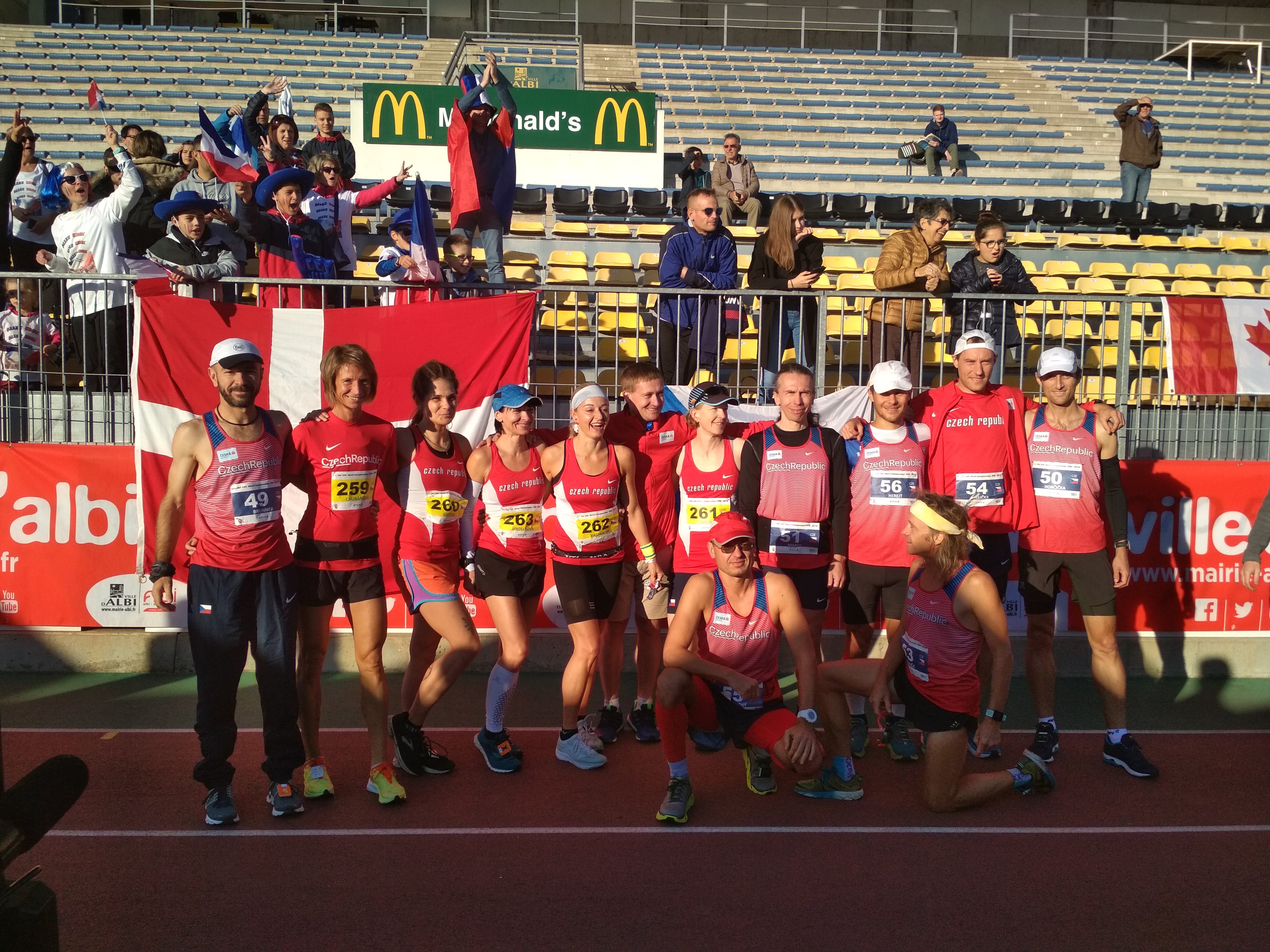Do Francie jsem odlétal ve čtvrtek brzy ráno přes Brusel do Toulouse společně s asi polovinou naší výpravy. Po klidném letu jsme na letišti nasedli do připraveného autobusu od pořadatelů a zamířili do 80 km vzdáleného menšího francouzského městečka Albi. Zavezli nás přímo na oběd, odkud jsme se jeli ubytovat do hotelu a následně společně zaklusali pár pomalých kilometrů na prokrvení nohou po cestě. Další den následovaly nutné oficiality jako kontrola národních dresů, technická porada, vlajkový průvod a slavnostní zahajovací ceremoniál zakončený již tradiční pasta párty. Zde jsme se příliš dlouho nezdržovali a celá výprava kromě mě vyrazila pěšky do hotelu. Jenže já jsem věděl, že před třemi lety jsem měl večeře tři a ani tentokrát jsem nechtěl jít spát s poloprázdným žaludkem. Jako jediný jsem si šel dát ještě jednu porci a místo asi kilometrové chůze do hotelu jsem raději počkal na svezení autobusem. Šetřil jsem každý krok a věřil, že mi to hlavně v neděli pomůže.