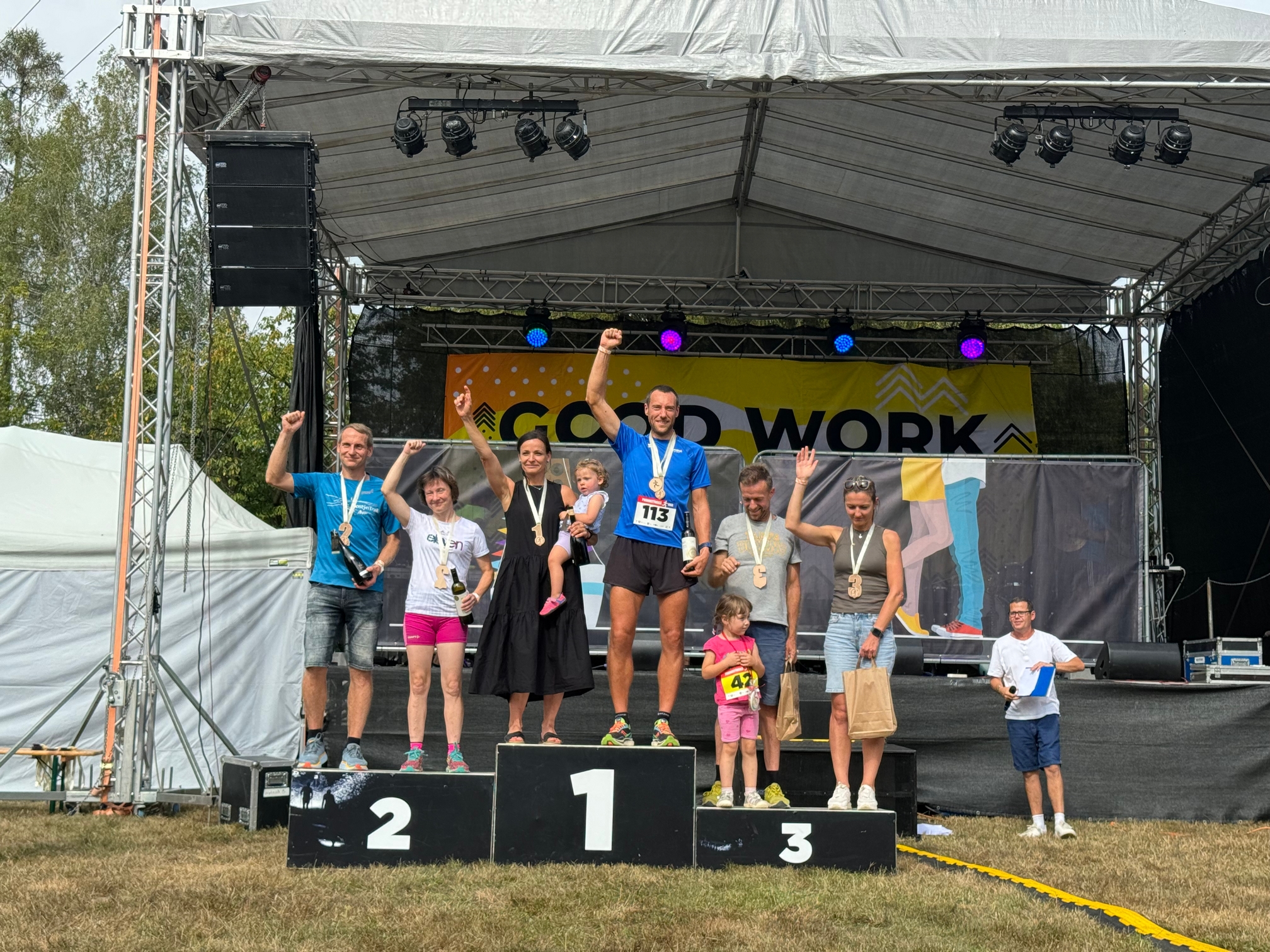 Do cíle se již nedělo nic dramatického a já doběhl celkově na třetí pozici, v kategorii jsem vyhrál. Celková naměřená vzdálenost Garminy byla 10,58 km a čas 42:09, průměrné tempo vycházelo na 4 min/km. V zámecké zahradě v cíli kromě závodu probíhal také gastro festival, čehož jsem rád využil. Dal jsem si vynikající hovězí burger, 3 bezinkové limonády a dvě piva.
