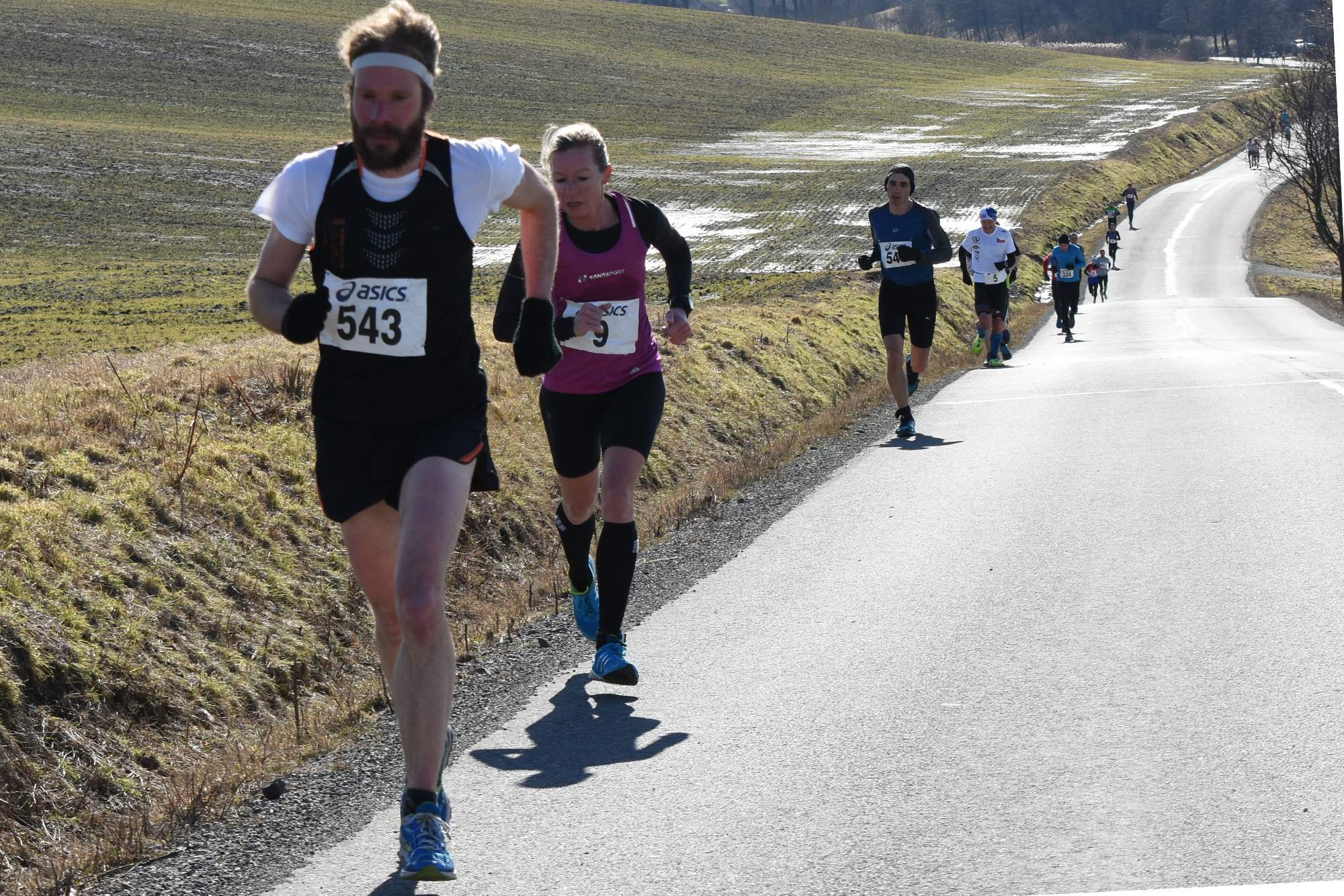 Bohužel na startu jsem nebyl v úplně ideální pozici a hodně jsem se musel prodírat dopředu. První 3 kilometry jsem neustále někoho předbíhal, ale nejzajímavější to bylo na čtvrtém kilometru, kdy jsem v kopci vedoucím z Prusinovic dostihl výborně běžící Petru Pastorovou z MK Seitl Ostrava, za který také běhám. V následném seběhu mě předstihl Petr Vabroušek a byl jsem velmi překvapený, že jsem byl v úvodu před ním. Z kopce mu to běželo velmi dobře. Na šestém kilometru je nejnáročnější a nejobávanější kopec v Tučapech. V něm jsem opět předběhl několik závodníků včetně Petra Vabrouška, ale to mi nevydrželo dlouho. V následném seběhu mi to hned vrátil. Snažil jsem se ho držet, ale bohužel se mi to nepodařilo. Při výběhu z Tučap začal foukat nepříjemný protivítr a moje tempo se zpomalilo. Běželo se mi dobře, ale únava už byla znát.